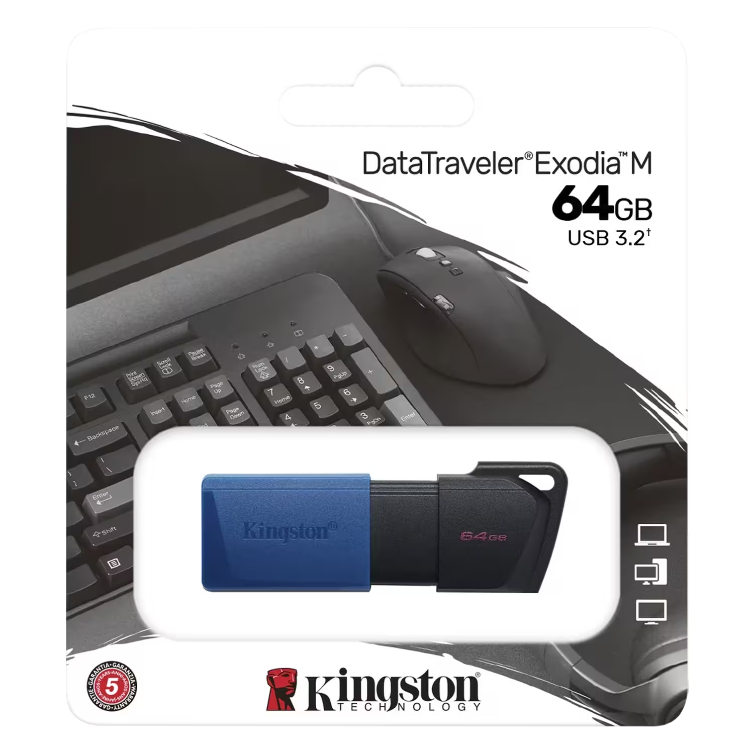 O pendrive DataTraveler Exodia da Kingston oferece desempenho USB 3.2 Gen 1 para fácil acesso a laptops, PCs, monitores e outros dispositivos digitais, junto de 64GB que permite rápidas transferências e prático armazenamento de documentos, música, vídeos e muito mais.